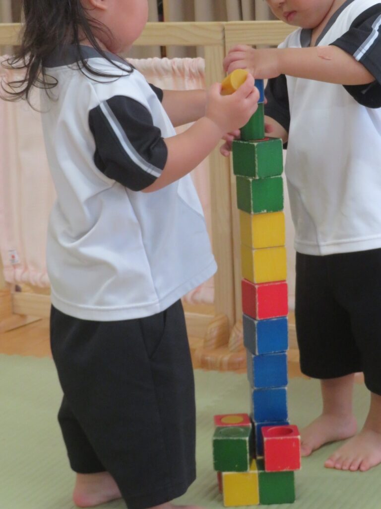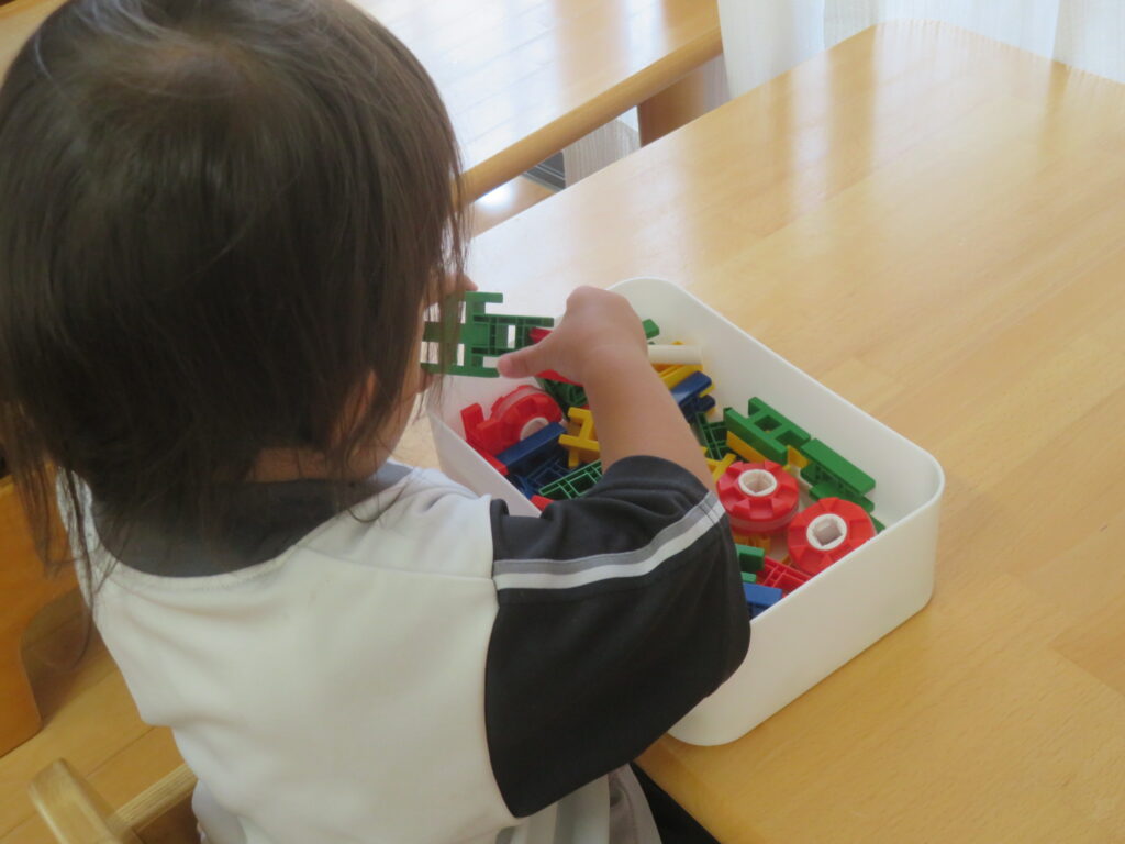 入れたり、高く積んだり・・・動作が楽しくて「こうかな?」と、パーツの向きを変えたりしながら遊んでいます。