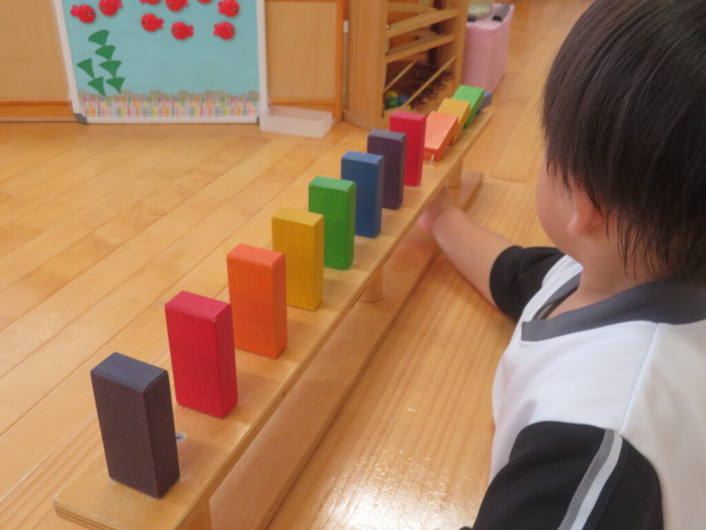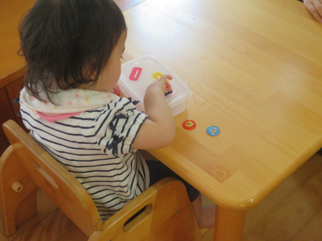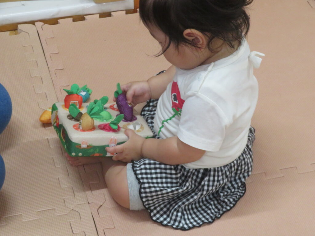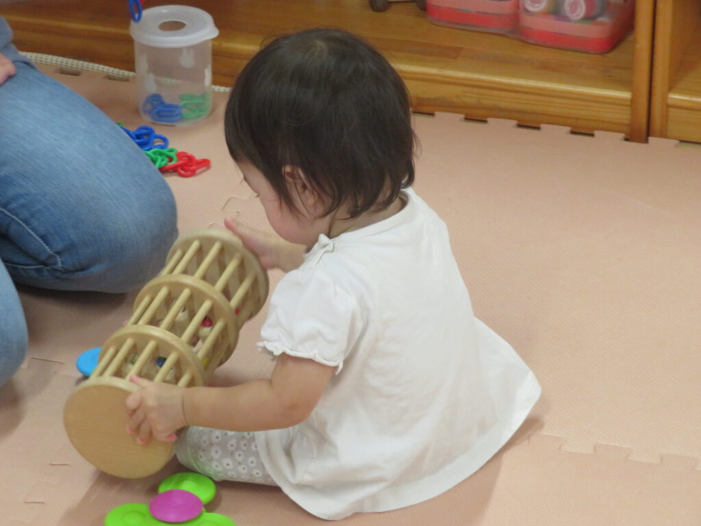 他にも転がす・引っ張るなど発達を促すおもちゃがあり、子ども達も自分で選んで遊んでいます。