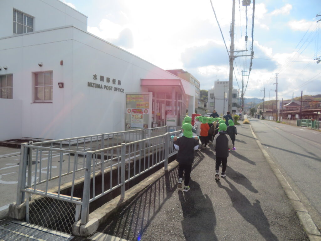 郵便局に行くまでには、歩道を歩き横断歩道をわたり、交通安全指導でお巡りさんに教えていただいた事を思い出して歩きました。