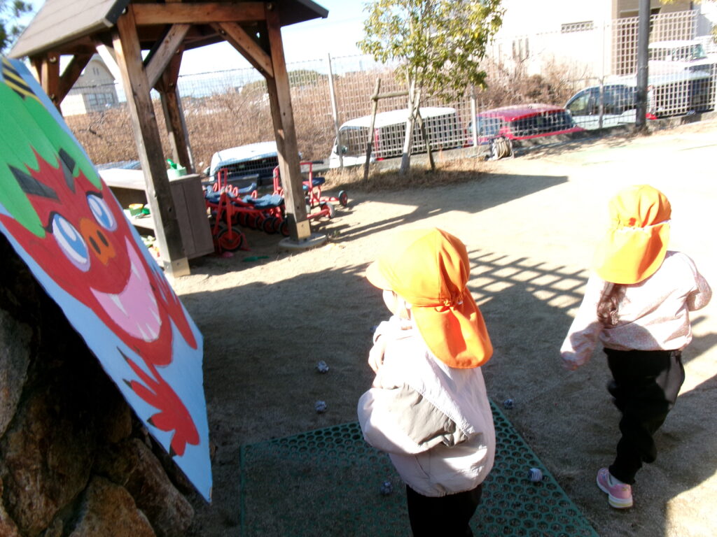 「鬼は外!」と、泣き虫鬼、怒りんぼう鬼、わがまま鬼、食べ物の好き嫌い鬼・・・など、心の中の悪い鬼を退治して一年間元気に過ごせますように豆まきを楽しみました。