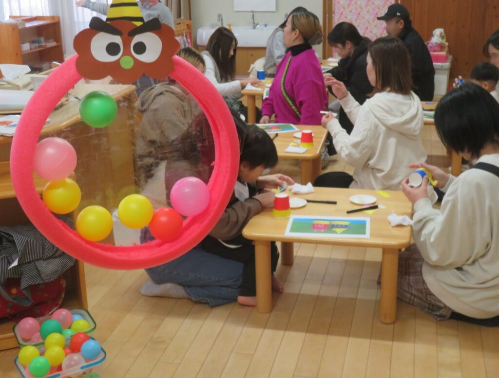 0・1歳児のクラスには、地域の子ども達も親子で『節分遊び』に参加してくれました。
