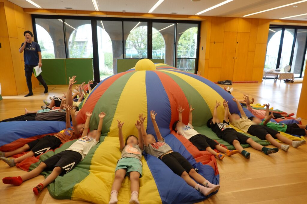 ふじぐみさん(4歳児)は、バルーン演技披露でした。みんなで力合わせて、一つ一つの技に取り組んでいた姿に、びっくりしました。「は・な・び」の技は、練習で全くできなかった形を、本番でおうちの人に1番綺麗な形で、見てもらえて本当に良かったと思います😊