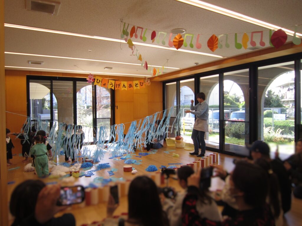 絵本「もりのおふろ」のストーリーに合わせての内容で最後はみんなでシャワーを浴びてすっきりしました。いいきもち~!