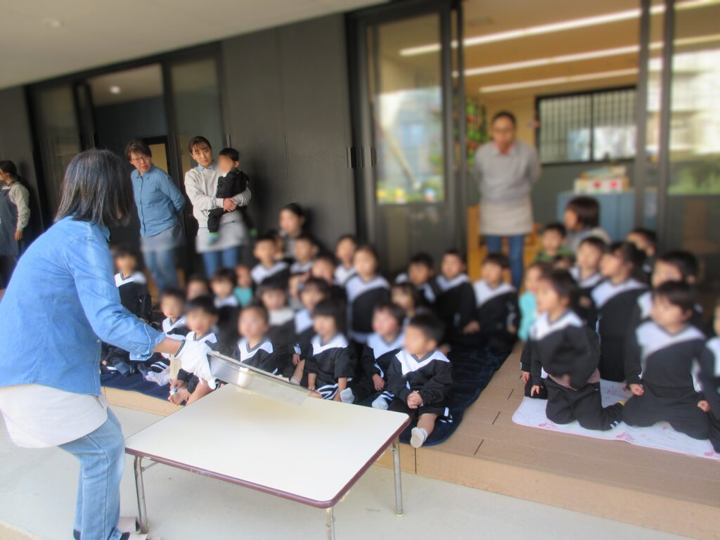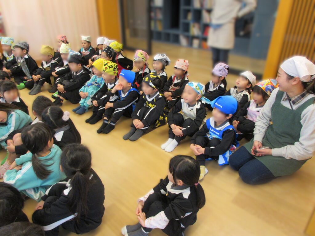 餅つきの前に”おもちのきもち”の絵本をよみました。
