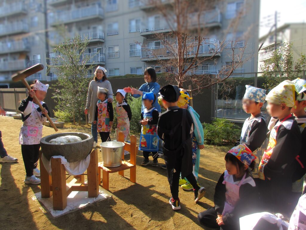 5歳児クラスの子どもたちは憧れの餅つきをしました。