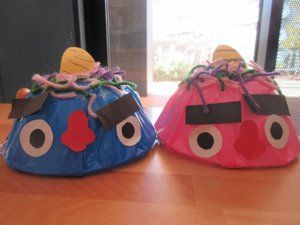 クラスそれぞれの鬼さんお面・帽子が出来ました。