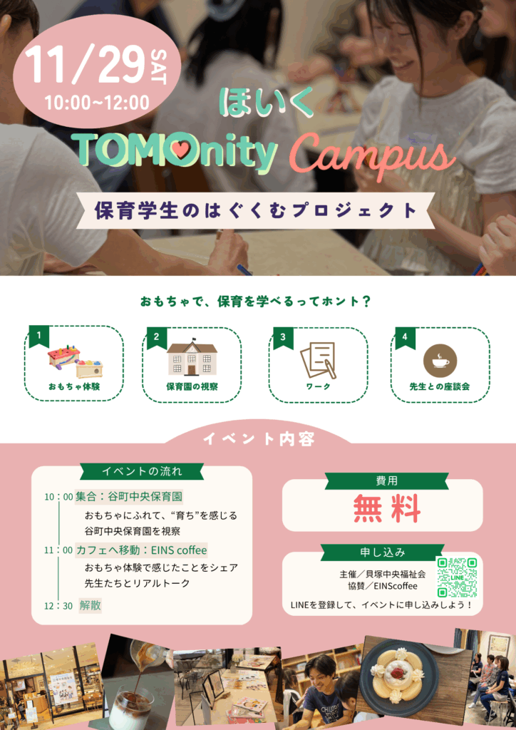 【参加無料】11/29開催|ほいくTOMOnity campus|学生がつながる保育イベント‼