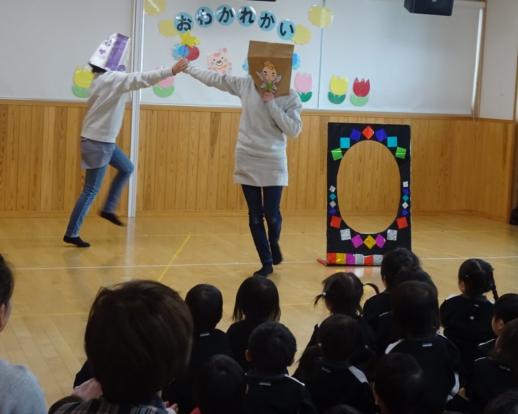 職員からの出し物では、5歳児ゆり組が発表会で題材として取り組んだ「しらゆきひめ」にちなんだ内容を披露しました。踊りや、「この先生は誰でしょう?」というクイズもあり、子どもたちは大いに盛り上がり、笑顔あふれる時間となりました。