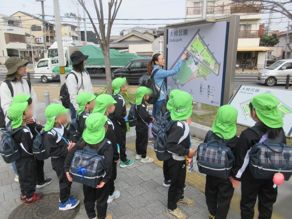 大枝公園へのお別れ遠足に出かけました。徒歩ですぐの京阪電車に乗り、駅のホームで電車を待っていると、園から手を振ってお見送りをしてくれる子どもたちや先生の姿が見え、とても嬉しい気持ちになりました。