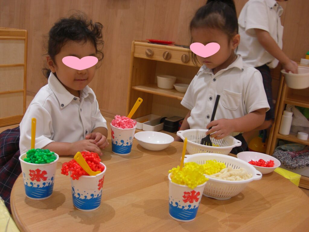 「おいしそう〜!」と笑顔が広がり、お友だちと一緒に食べるかき氷は、特別なおいしさ☆
