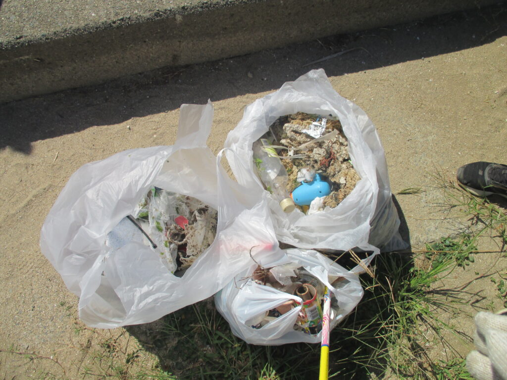 「これは海に捨ててあったゴミです。海にはたくさんのゴミが落ちていて海がすごく汚れています。」